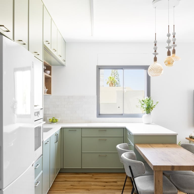 מטבח בצבע פיסטוק עם עץ אלון, שילוב מושלם של רוגע ויוקרה. העיצוב משלב צבעים רגועים עם נגיעות טבעיות, creating אווירה נוחה ומרשימה בו זמנית. השילוב הזה מעניק לחלל תחושת יוקרה, תוך שמירה על נוחות ואסתטיקה